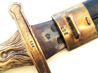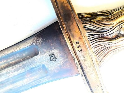 In zeer goede staat verkerend frans artillerie zwaard model 1771 met de zeldzame eagle head als handvat. Het zwaard en schede zijn beide genummerd en gemerkt (zie fotos).  Totale lengte is 63,5 cm en het lemet is 48,5 cm. Geen breuken in de leren schede, in zeer goede staat leer. Prachtig origineel artillerie zwaard in top conditie.