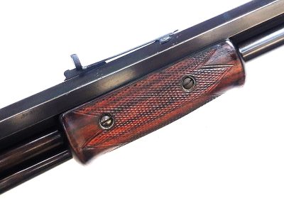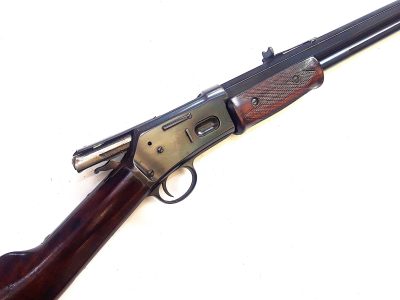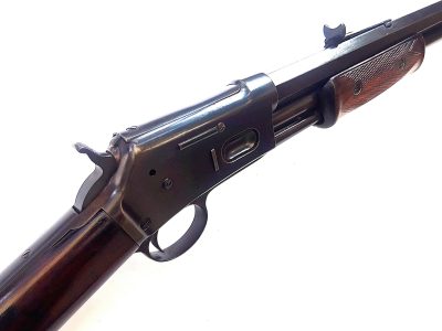 Antique Colt Lightning slide action caliber 38-40 in very good condition. It has the original finish and a barrel with excellent deep rifling. It features beautifully flamed woodwork with a very good forend featuring beautiful, undamaged checkering. It has a very good, tight action and a properly functioning safety catch. In short, a beautiful Colt Lightning in excellent condition for a serious collection or for the black powder shooter. (See photos)