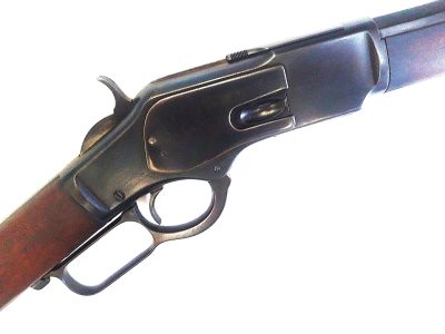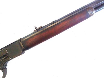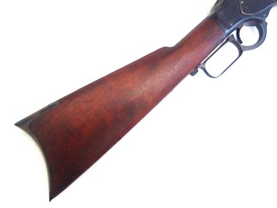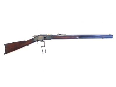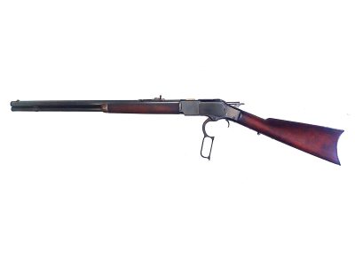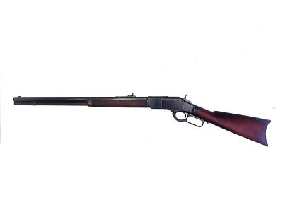 Antique Winchester 1873 caliber 44-40 in very good condition. Octagonal barrel with a clear barrel address and very deep rifling. Sharp model markings on the tang. Beautiful flamed woodwork without cracks or tears. Good, tight mainspring and smooth mechanics. Beautiful, straight-running Winchester 1873, the gun that won the West. Built in 1882.