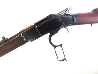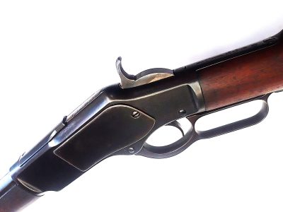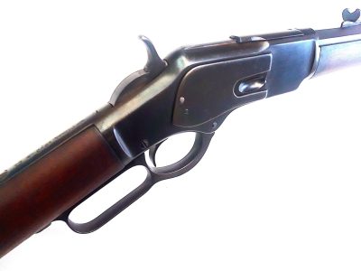 Antieke Winchester 1873 cal 44-40 in zeer goede staat. Octagonale loop met duidelijk loopadres en zeer diepe trekken en velden. Scherp model aanduiding op de tang. Mooi gevlamd houtwerk zonder barsten of scheuren. Goede strakke hoofdveer en een goede mechaniek. Prachtige strakke Winchester 1873, the gun that won the west. Bouwjaar 1882.