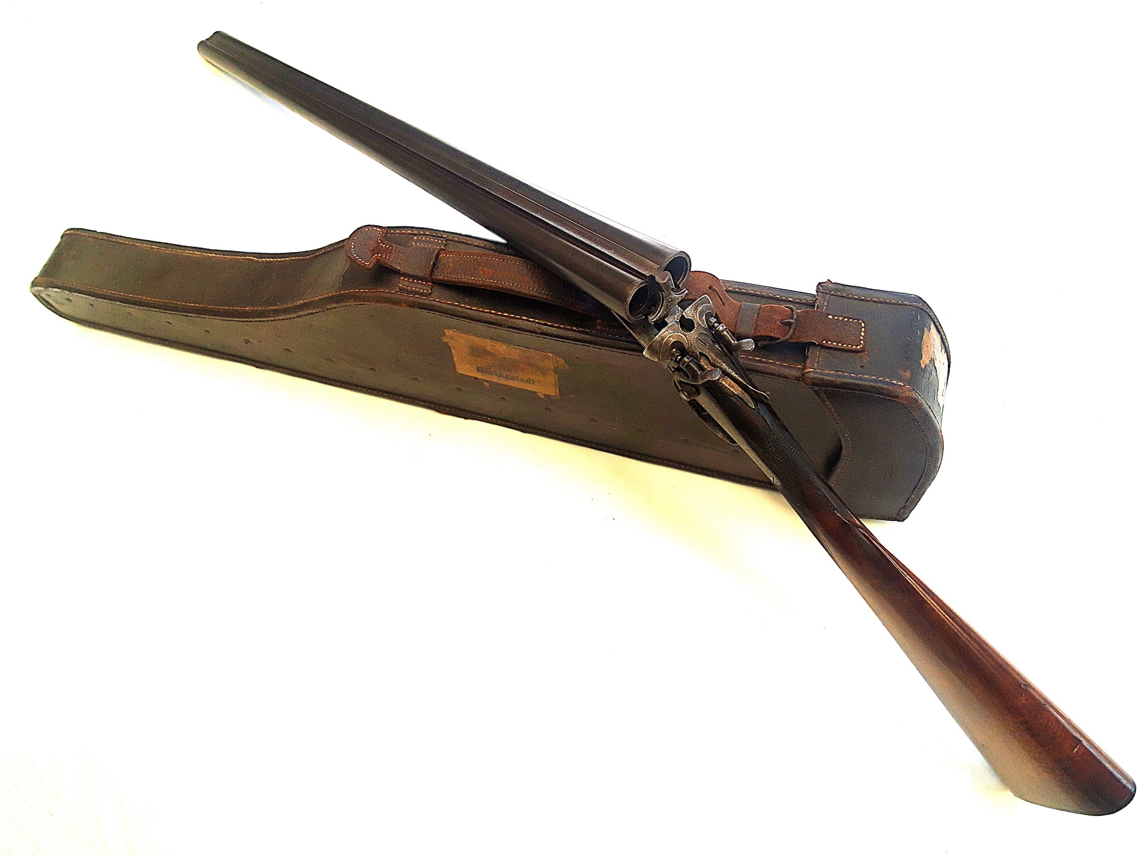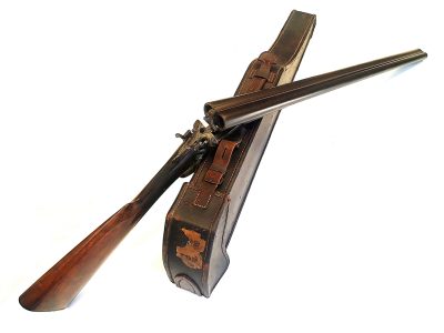 Antiek engelse double shotgun cal 12 in koffer